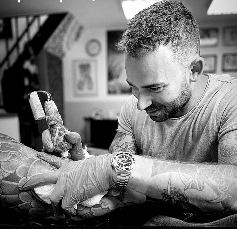 Sinds 2006 werk ik als allround tattoo-artiest. Oorspronkelijk kom ik uit Spaarndam, maar ik ben inmiddels werkzaam in Santpoort‑Noord. Van black & grey tot old school, mandala of Japans – elke stijl vraagt om vakmanschap en gevoel voor detail. Ik werk uitsluitend met custom ontwerpen die passen bij jouw idee en persoonlijkheid. Eerlijk, relaxed en met aandacht voor jouw verhaal.